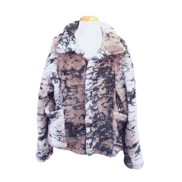 This comfy winter jacket is styled as a bomber in a fluffy animal print with patch pockets and a zip. These are lovely to relax and snuggle up in at home as well as keep warm on a chilly night.