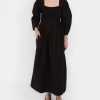 Cotton Poplin Open-neck Smock Long Dress