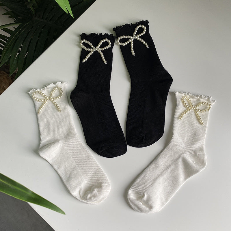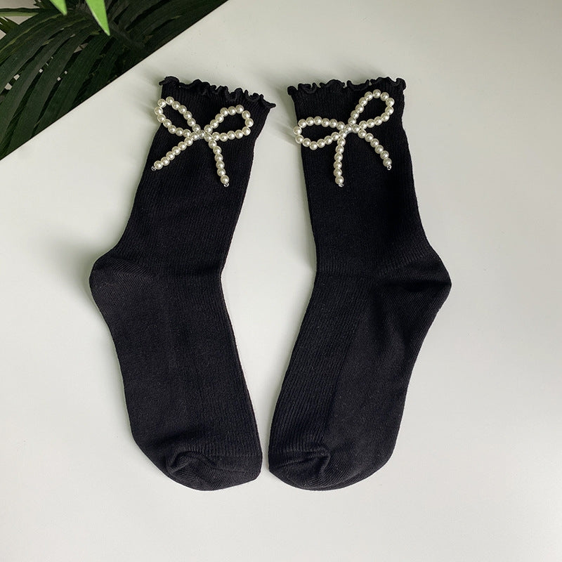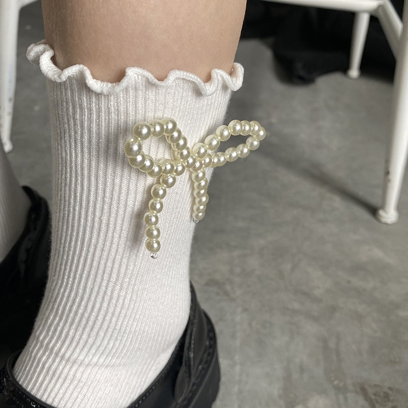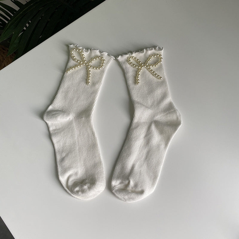 Cotton Socks With Faux Pearl Bows