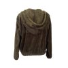 This comfy winter jacket is styled as a bomber in a fluffy olive with patch pockets, an oversized hoodie and a zip. These are lovely to relax and snuggle up in at home as well as keep warm on a chilly night.