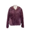 This comfy winter jacket is styled as a bomber in a fluffy raspberry with patch pockets, an oversized hoodie and a zip. These are lovely to relax and snuggle up in at home as well as keep warm on a chilly night.
