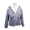 This comfy winter jacket is styled as a bomber in a dove grey faux fur with patch pockets, an oversized hoodie and a zip. These are lovely to relax and snuggle up in at home as well as keep warm on a chilly night.